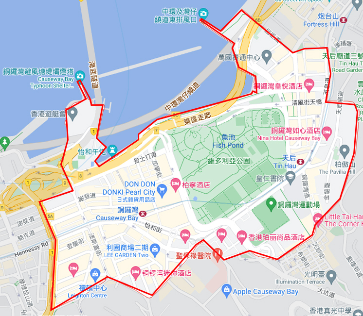 凡居住於大坑及銅鑼灣區指定範圍(如圖紅圈內),訂購滿$100的訂單,並於送貨方式選擇「【大坑&銅鑼灣專區】買滿$100免運費」後,即享有免運費優惠,只需填寫送貨地址及付款即可。